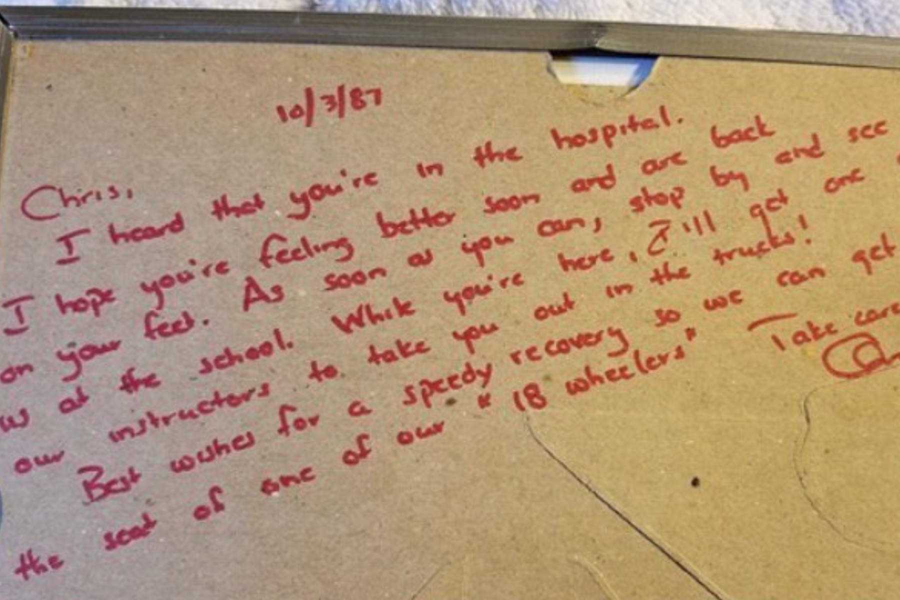 During that difficult season, C1 owner Chris Welch sent him a letter and made a promise: once he recovered, he would get that truck ride he had been dreaming about. And he followed through.