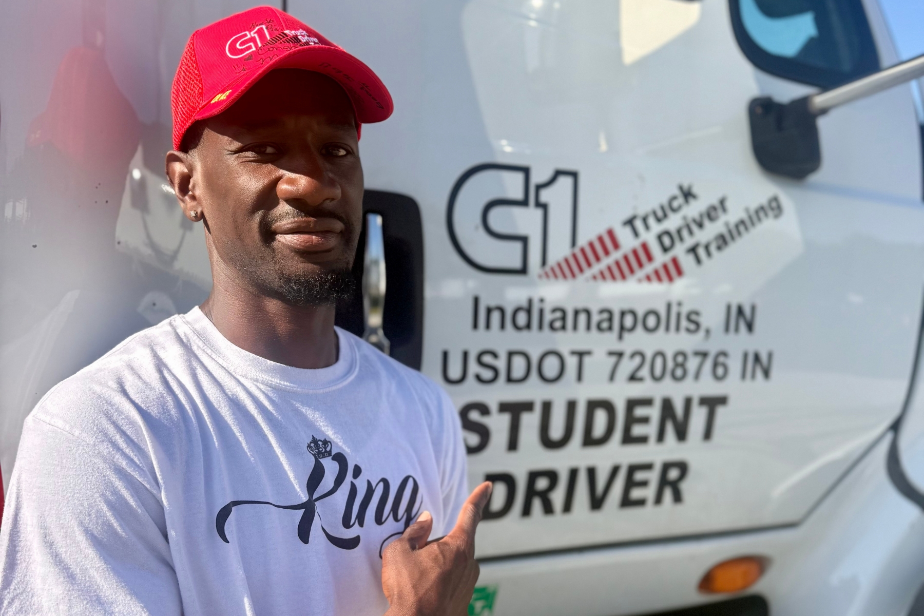 A friend referred him to the Indianapolis Urban League, which then connected him with C1 Truck Driver Training. Determined to earn his Class A CDL, he stepped into training ready to do the work. That decision alone took courage, but what followed made his journey even more remarkable.